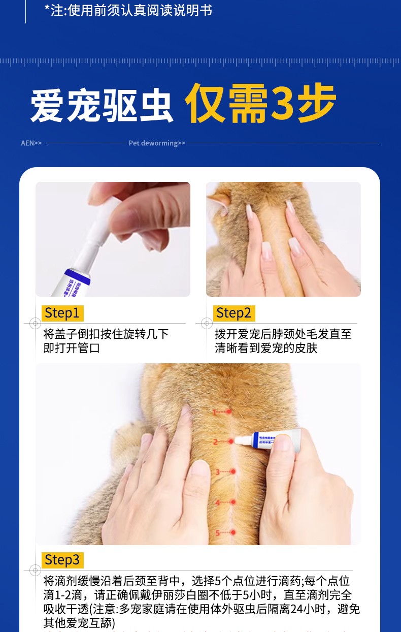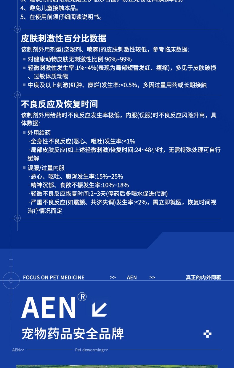 [用法与用量]以本品计。外用:一次量,每1kg体重,犬0.1ml。预防或治疗期间,每月给药一次。为防止犬舔舐,可将本品滴于犬背两肩胛骨之间到臀部的皮肤上,可分3-4处滴加。给药疗程详见说明书。