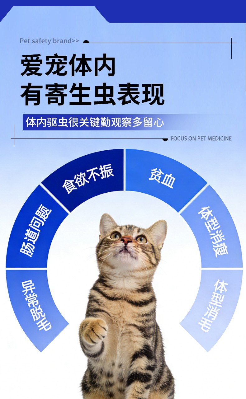 [不良反应](1)犬以50mg/kg每天2次用药,会逐渐产生厌食症。(2)猫偶见轻微嗜睡、抑郁、厌食等症状,当用本品治疗并殖吸虫病时有抗服的现象。(3)偶见犬猫的再生障碍性贫血。(4)对妊娠早期动物有致畸和胚胎毒性的作用。